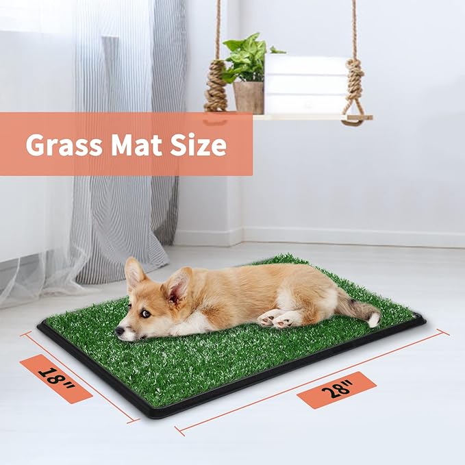 • WHAT YOU WILL GET - Package includes 2 PCS 18 inch x 28 inch dog potty grass. Turf grass height is approximately 1.18 inch, perfect for 20"x30" dog potty tray. You can freely cut to the size you want. Perfect for owners that work long hours or living in an apartment and want to potty train their pets. Realistic soft turf makes it easier to train puppies.