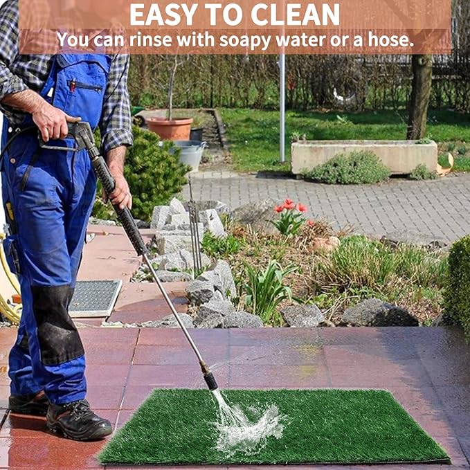 • LOW MAINTENANCE COSTS - Reusable artificial turf grass, you can save money and prevent waste that disposable pads create. No mowing or growing. This high-quality synthetic fiber mat can remain strong for long periods of time without fading or falling in rain or sunlight.