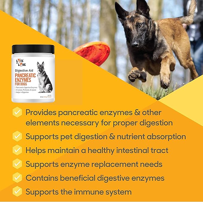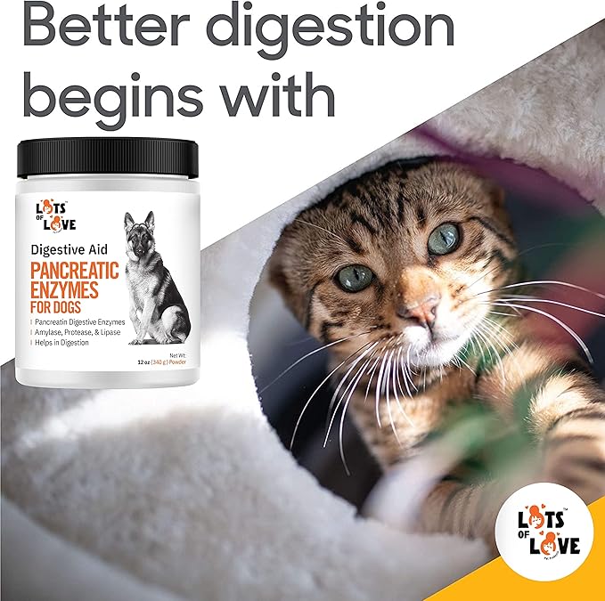 • Product Benefits : Lots of Love Pancreatic Enzyme Supplement for Dogs & Cats Powder is a high potency, pancreatic enzyme powder intended for use as a digestive supplement to support enzyme replacement needs. The high levels of enzymes in Bio Case assist with the absorption of nutrients and digestion by supporting the breakdown of carbohydrates, proteins, and fats. Lots of Love Pancreatic Enzyme Supplement for Dogs & Cats Powder is a high potency, pancreatic enzyme powder intended for use as a digestive s… See more