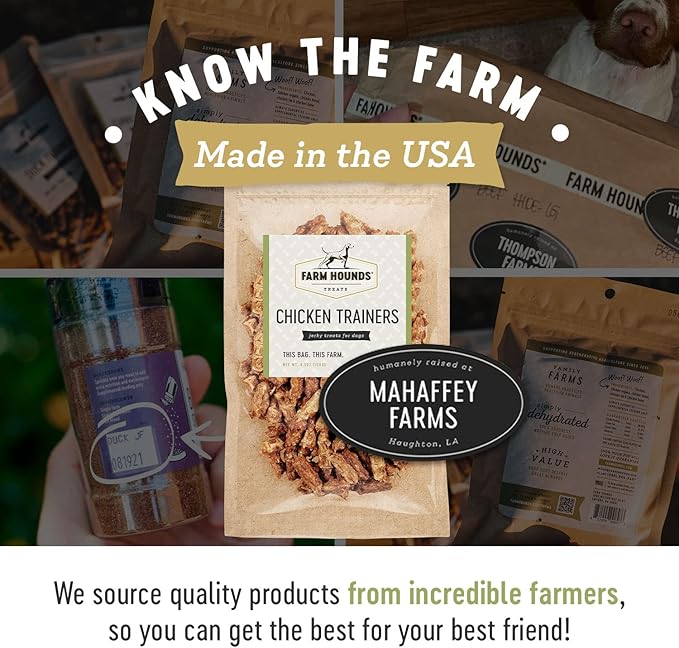 • About Farm Hounds: We believe healthier animals are happier animals. With your canine in mind, we make all of our treats nutritionally beneficial and delicious; Our close relationship with all-American family farmers who raise their animals in a humane way helps us use premium raw materials for our products