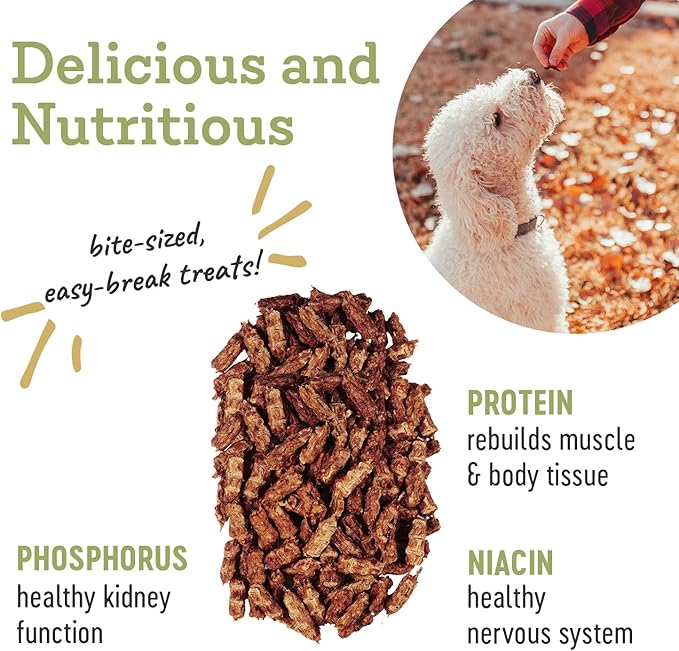 • Bite-Sized: The same shelf-staple formula of our jerky strips now available in convenient bite-sized pieces that are perfect for general reward, training, or as an on-the-go snack, with a flavor that your pet will love and filled with all the nutrients that they need!