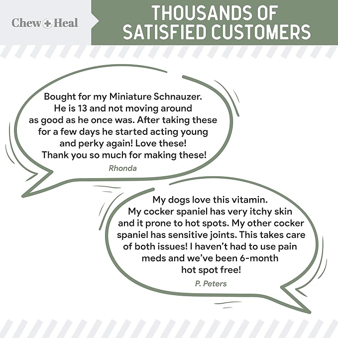 • MADE IN AMERICA: Along with those ingredients come all the vital minerals your dog needs every day, including calcium, vitamin A, B, C, D, & E, magnesium, iron, folic acid, biotin and more. Check the bottle for dosage recommendations. The treats are delicious!