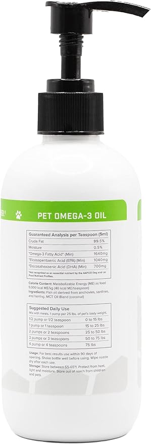 • OMEGA-3 RICH FISH OIL: Our pet oil is fortified with omega-3 fatty acids derived from high-quality fish oil, providing essential nutrients that contribute to your pet's overall health.