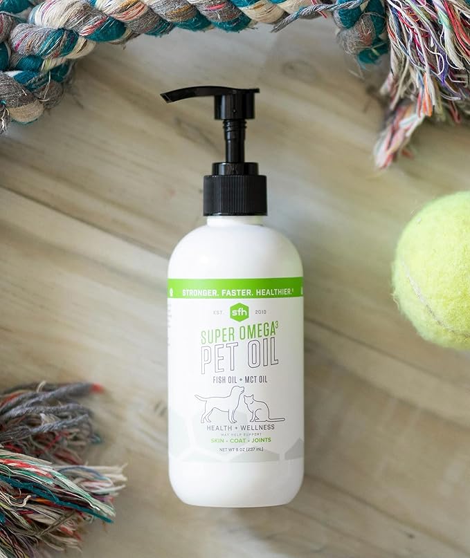 SFH Super Omega 3 + MCT Pet Oil | Fish Oil + Coconut Oil | for All Pets | Increases Energy, Supports Skin, Coat, Joint, Heart, and Immune System Health | Liquid Form Easy to Dispense (8 oz)