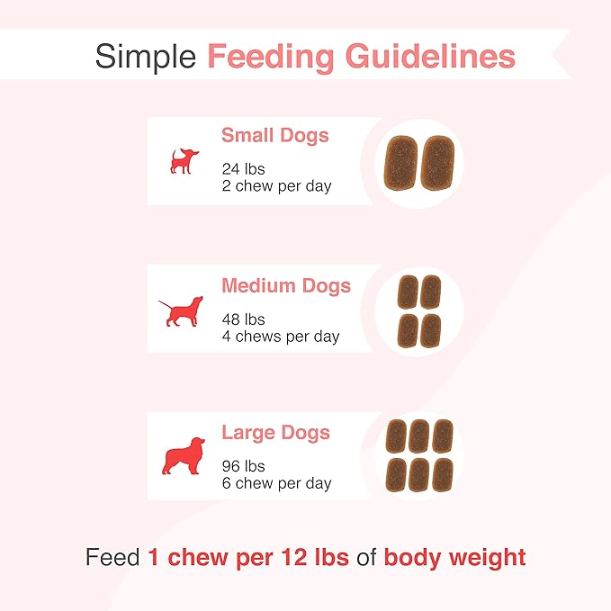 • Helps Improve Digestion - Powerfully supports gut health, digestion, regularity and more with a big 100 Million CFUs daily supply of natural Bacillus coagulans. This can help avoid a wide range of illnesses including itchy skin, respiratory, and urinary. Place a small chew in your dog's food each day, or feed as a treat, for better health and a happier life