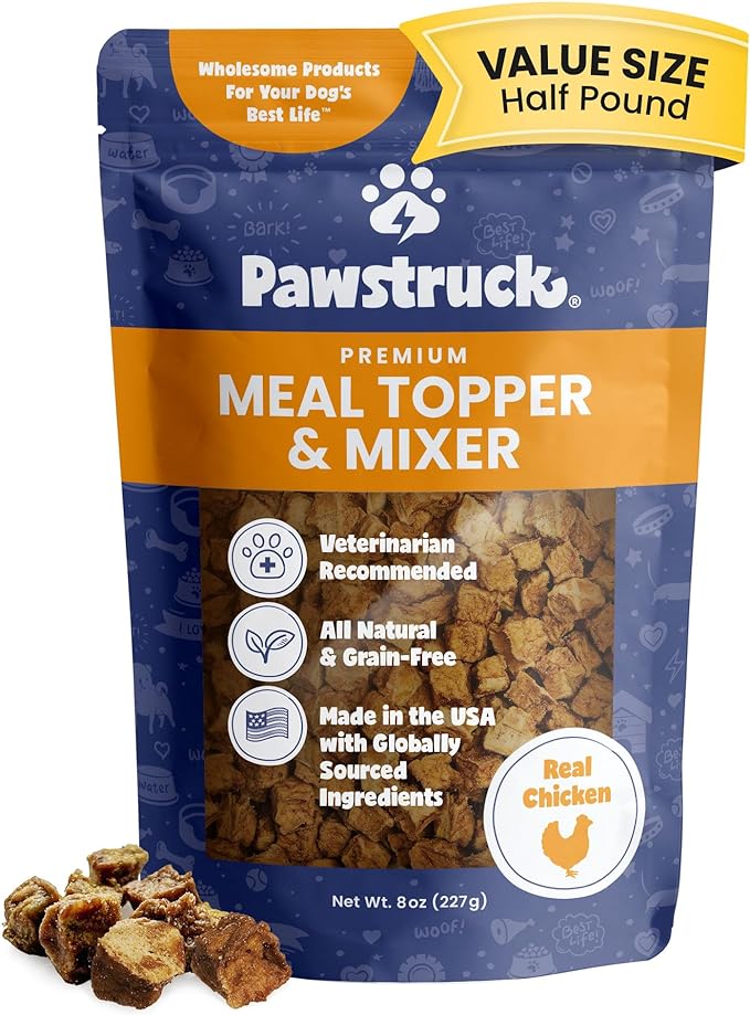 Pawstruck Vet Recommended Air Dried Dog Food Toppers for Picky Eaters - Made in USA with Real Chicken - Premium All Natural Meal Mix-in Kibble Seasoning Enhancer - 8 oz - Packaging May Vary