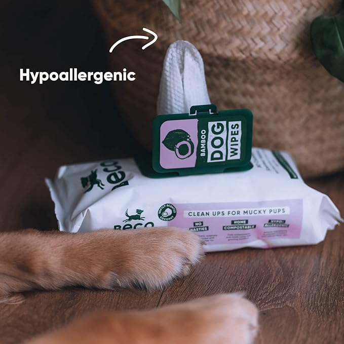 Beco Bamboo Dog Wipes, Thick Grooming Wipes For Easy Pet Cleanup, Home Compostable, 80 Count (Coconut)