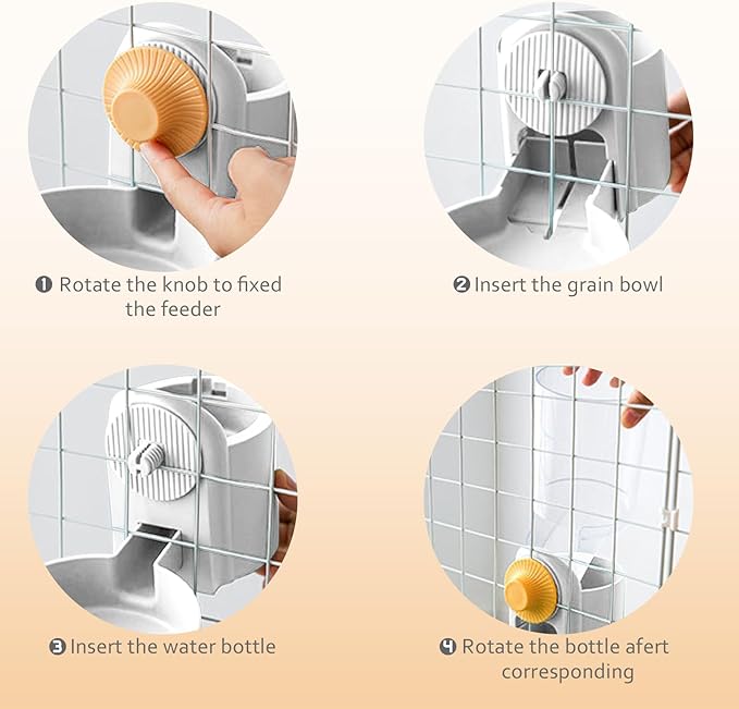 • 【Safety & Convenient to Use 】: Our feeders and water are made of food-grade plastic material, non-toxic and tasteless. The clear design is great for keeping tabs on how much food and water they have left. They are attached to the cage fairly easily and you can refill them without having to open the cage.