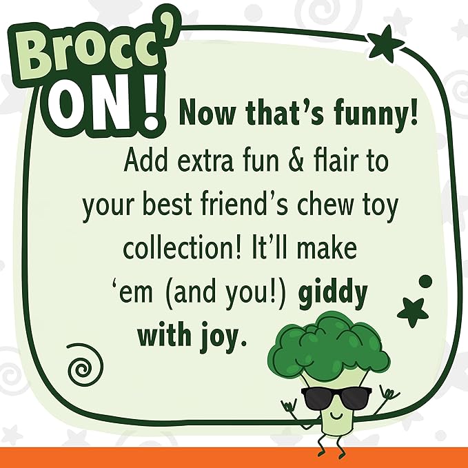 • BROCC' ON! - We dog-ified broccoli to create an exciting vegetable chew toy that will add extra fun & flair to your best friend's chew toy collection