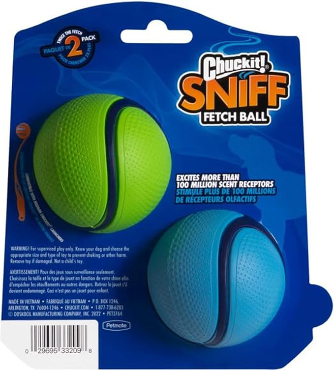 • BOUNCE BALL: The Chuckit! Sniff Ball offers high bounce, buoyancy, visibility, and durability; This dog toy can be used in the water and is designed specifically for the game of fetch; Compatible with Chuckit Launchers