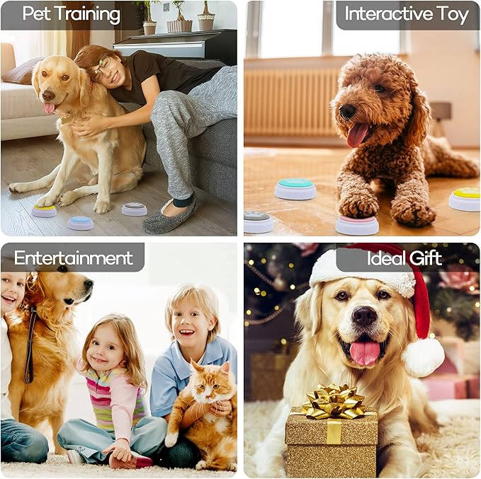• High Quality, Multi-Functional: The dog training buttons are equipped with a high-quality microphone, you can get clear sound and better volume.Dog talking button set can be a practical gift for neighbors, mates ,home, office, school, pranks or funny gifts.