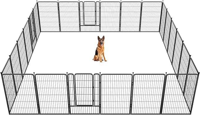 • đŸ¶ă€Supper easy to assemble】It won’t take you more than 5 minutes to assemble these portable dog fences as well as pack them away due to the rod-connected design. Meanwhile, panels can be added or removed freely to give you a fully flexible area and arrange the dog pen in any shape you need.