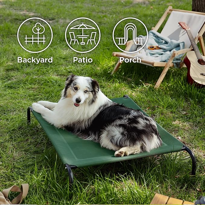 • Indoor & Outdoor Use: Weather resistant, the 8" raised breathable mesh cot works great indoors and outside. Keep your pup dry and comfortable in the backyard, on the patio or porch, next to the pool, or while camping.