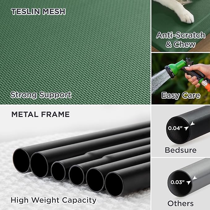 • Strong & Durable: Heavy-duty Teslin mesh holds up against scratching and chewing, providing excellent support and even pressure distribution to reduce joint and muscle pain. The strength-tested lightweight metal frame supports dogs up to 75 lbs.