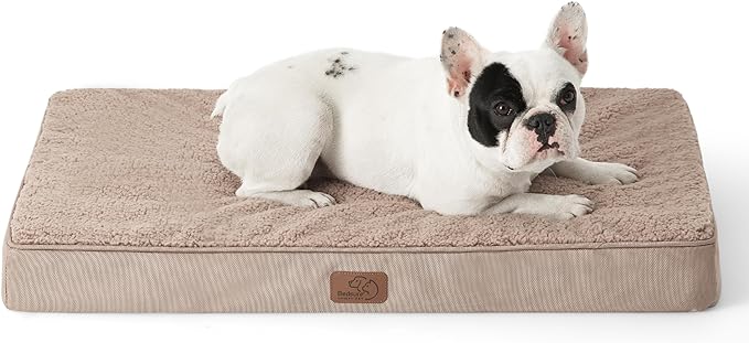 Bedsure Medium Dog Beds for Medium Dogs- Orthopedic Waterproof Dog Beds with Removable Washable Cover, Egg Crate Foam Pet Bed Mat, Suitable for Dogs Up to 50 lbs, Light Brown