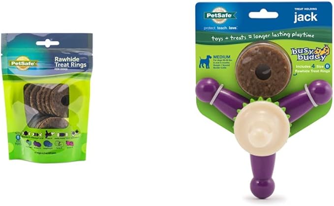 PetSafe Treat Rings for Busy Buddy Dog Toys - Easy to Digest - Interactive Toy Refills for Aggressive Chewers & Anxiety - 16 Rings - Size B - Original & Busy Buddy Jack Medium