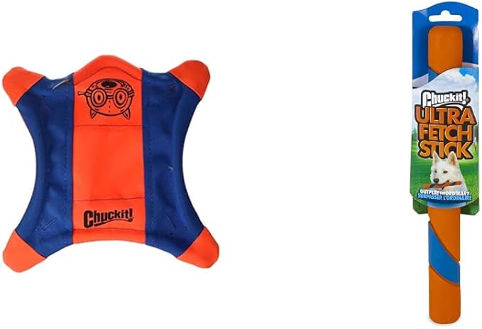 Chuckit! Flying Squirrel Dog Toy, Size Medium (9.5" Diameter) and Chuckit! Ultra Fetch Stick for All Breed Sizes