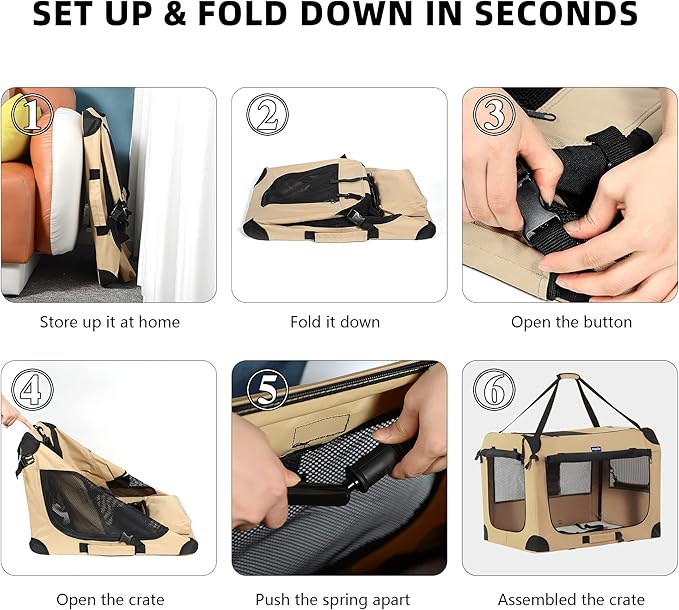 • 【Large Capacity&Portable】Portable medium dog crate: 32*23*23inch, perfect for medium & large dogs(such as Border Collie, samoyed, bulldog, etc.). Hold pets up to 25- 50 pounds. The soft dog crate can be folded/unfolded easily without tools in seconds, it is easy to store and save space.