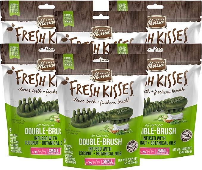 Merrick Fresh Kisses Double-Brush Dental Dog Treats with Coconut + Botanical Oils for Small Dogs, 9 Brushes, 5.5 OZ (Pack of 6)