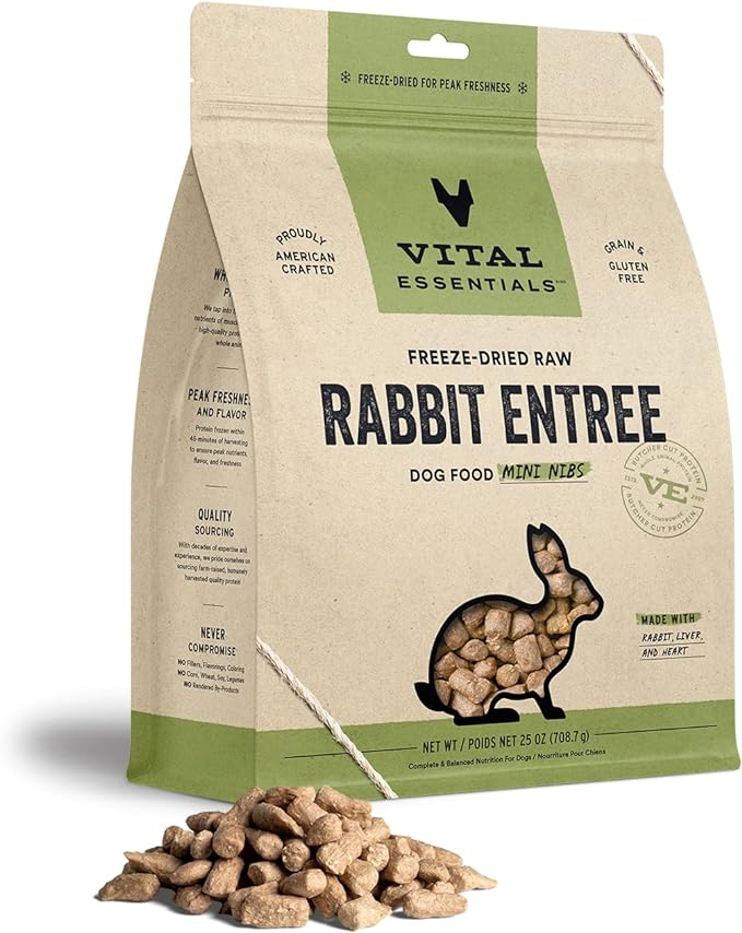Vital Essentials Freeze Dried Raw Dog Food, Rabbit Mini Nibs Entree, 25 oz
