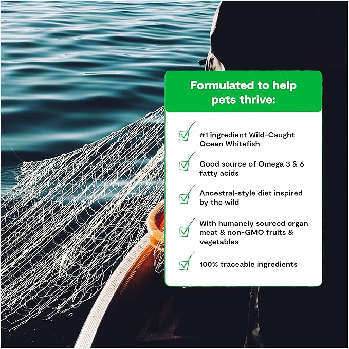 • HUMANELY SOURCED FISH - Crafted with a blend of wild-caught whitefish, salmon and rockfish, this delicious recipe includes nutrient-dense meat, organ, and bone with no grains or any byproducts.