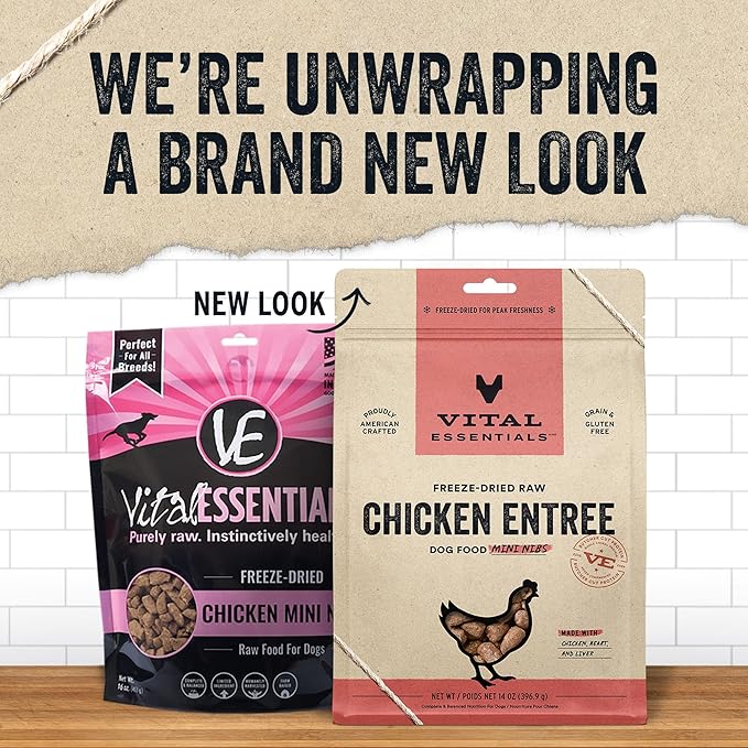 Vital Essentials Freeze Dried Raw Dog Food, Chicken Mini Nibs Entree, 14 oz