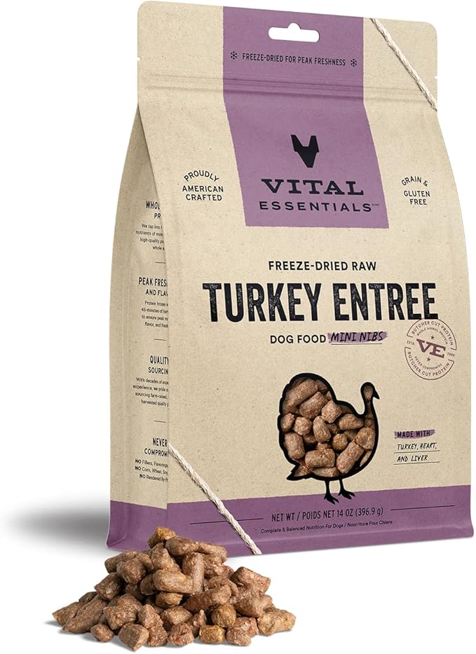 Vital Essentials Freeze Dried Raw Dog Food, Turkey Mini Nibs Entree, 14 oz