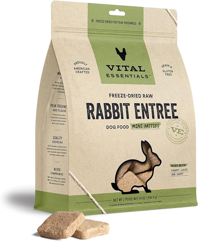 Vital Essentials Freeze Dried Raw Dog Food, Rabbit Mini Patties Entree, 14 oz