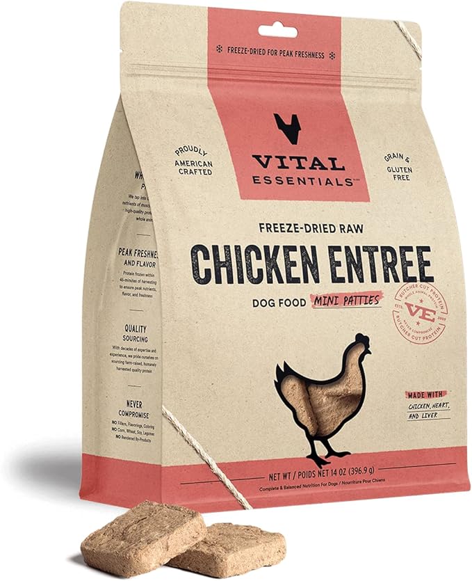 Vital Essentials Freeze Dried Raw Dog Food, Chicken Mini Patties Entree, 14 oz