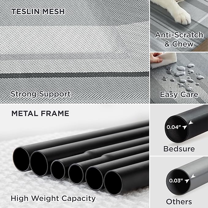 • Strong & Durable: Heavy-duty Teslin mesh holds up against scratching and chewing, providing excellent support and even pressure distribution to reduce joint and muscle pain. The strength-tested lightweight metal frame supports dogs up to 75 lbs.