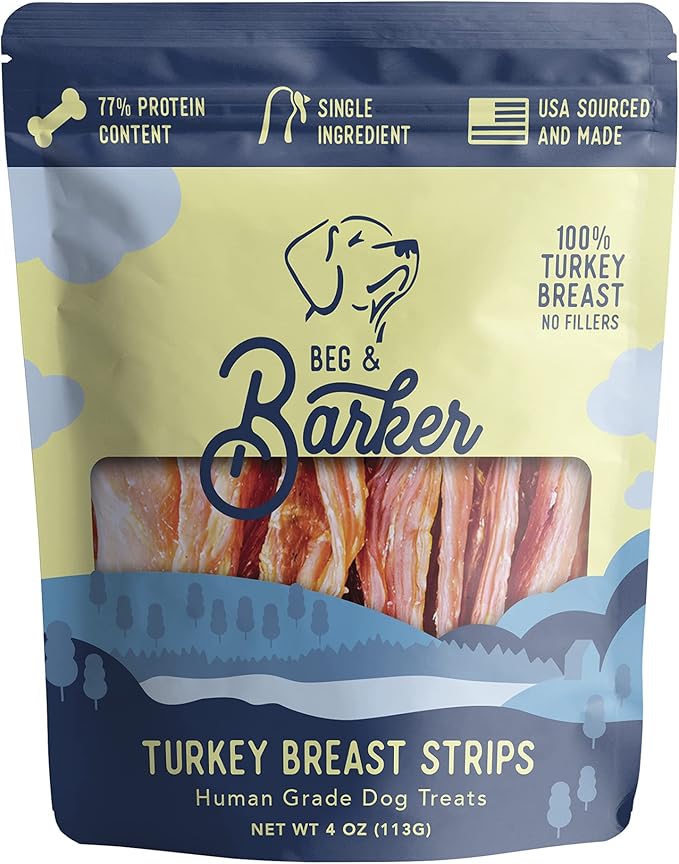 • HUMAN GRADE DOG TREATS FOR OPTIMAL PET WELLNESS - Beg and Barker's exceptional low-fat dog treats are crafted from wholesome, human-grade natural turkey jerky. Experience the transformative benefits these puppy treats offer, including enhanced skin and coat condition, improved digestion, increased energy, and brain health. Even for diabetic dogs, our treats complement restricted diets. Provide your fur baby with all natural dog jerky because a healthy dog is a joyful dog.