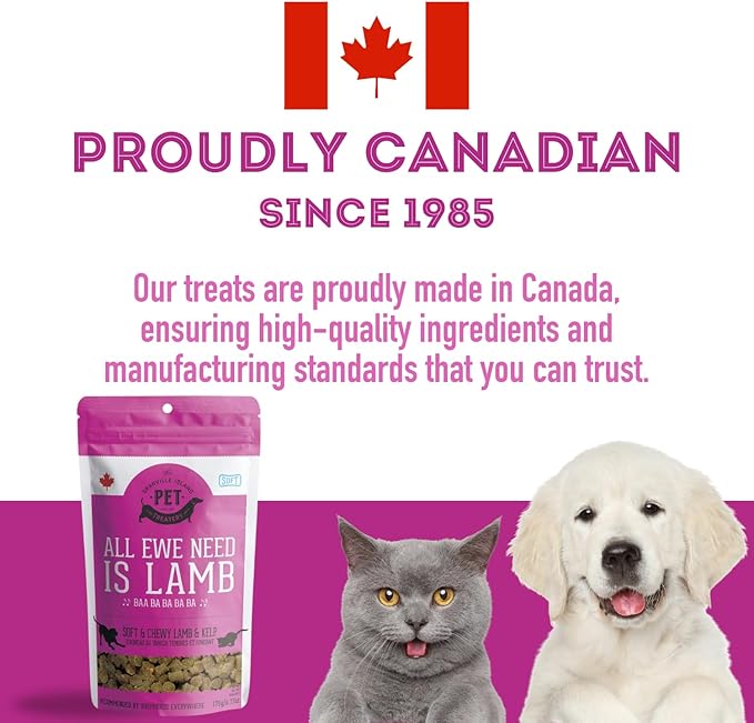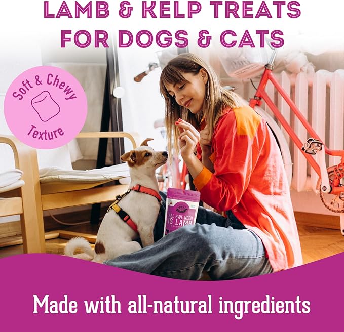 • IRRESISTIBLY UNIQUE FLAVOR PERFECT FOR PUPPIES, SENIOR DOGS, AND CATS - Give your pets the gift of an extraordinary, palate-pleasing experience with our lamb and kelp treats, lovingly crafted for both dogs and cats. In a league of their own, these treats offer a one-of-a-kind taste that's sure to make your furry friends come back for more. Unlike typical pet treats, our lamb treats not only tantalize their taste buds but also make the perfect small dog treats & large dog treats!