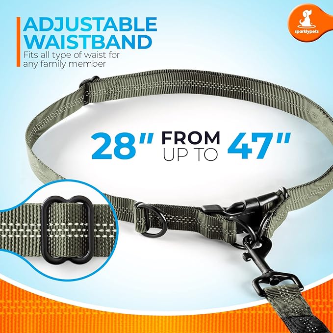 SparklyPets Hands Free Dog Leash with Reflective Stitches – Waist Leash for Dog Walking, Training & Jogging – Running Leash Hands Free for Medium & Large Dogs