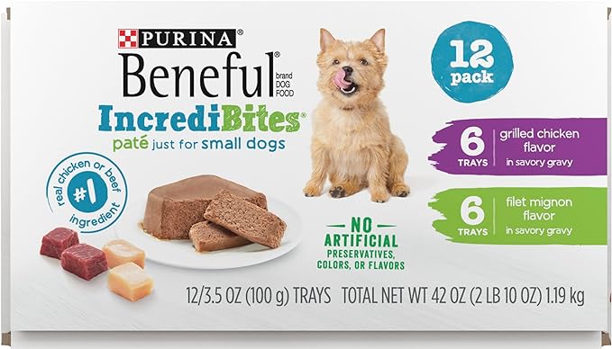 Beneful IncrediBites Grilled Chicken Flavor and Filet Mignon Flavor Wet Food for Small Dogs Variety Pack - 3.5 Ounce (Pack of 12)