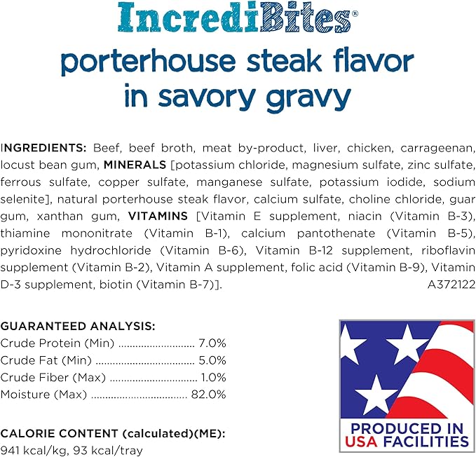 • Great tasting chicken and natural bacon or porterhouse steak flavor or porterhouse steak flavor recipes with a tender texture in a savory dog food gravy