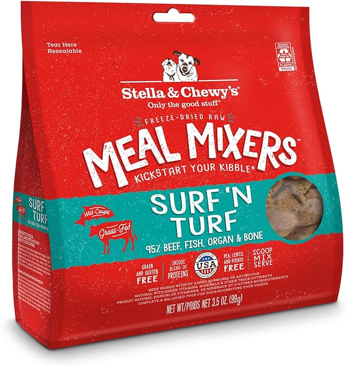 Stella & Chewy's Freeze Dried Raw Surf & Turf Meal Mixer – Dog Food Topper for Small & Large Breeds – Grain Free, Protein Rich Recipe – 3.5 oz Bag (Pack of 1)