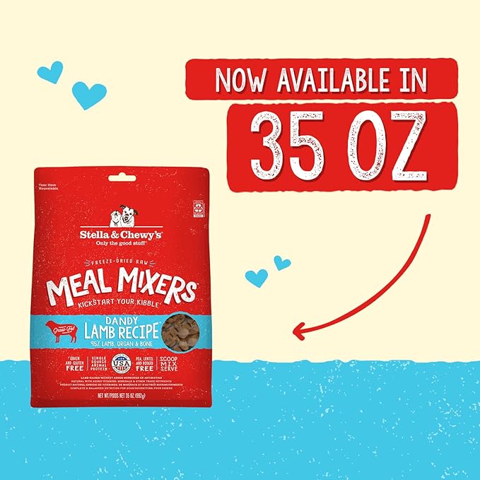 Stella & Chewy's Freeze Dried Raw Dandy Lamb Meal Mixer – Dog Food Topper for Small & Large Breeds – Grain Free, Protein Rich Recipe – 35 oz Bag