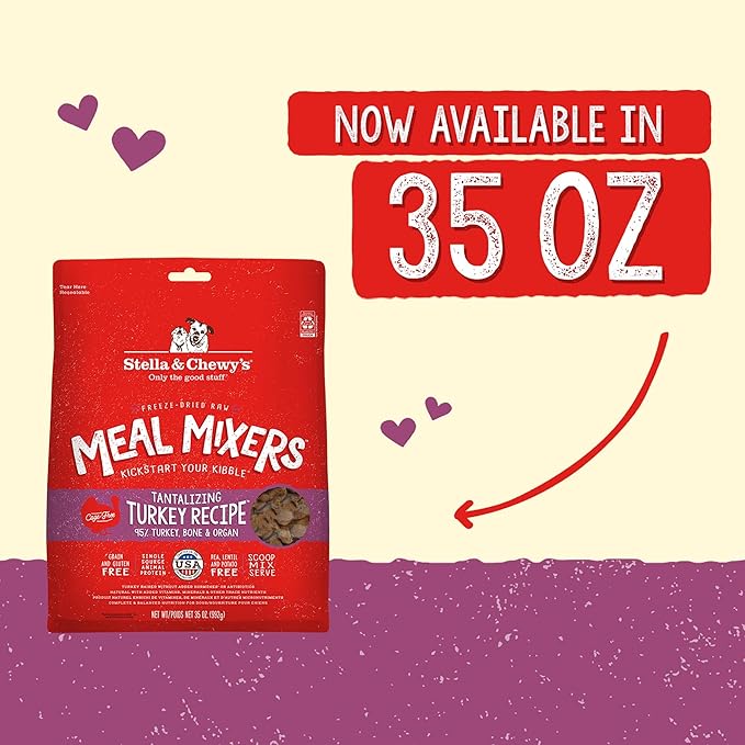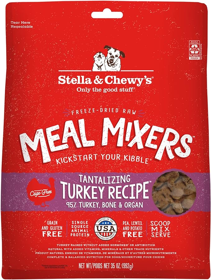 Stella & Chewy's Freeze Dried Raw Tantalizing Turkey Meal Mixer – Dog Food Topper for Small & Large Breeds – Grain Free, Protein Rich Recipe – 35 oz Bag