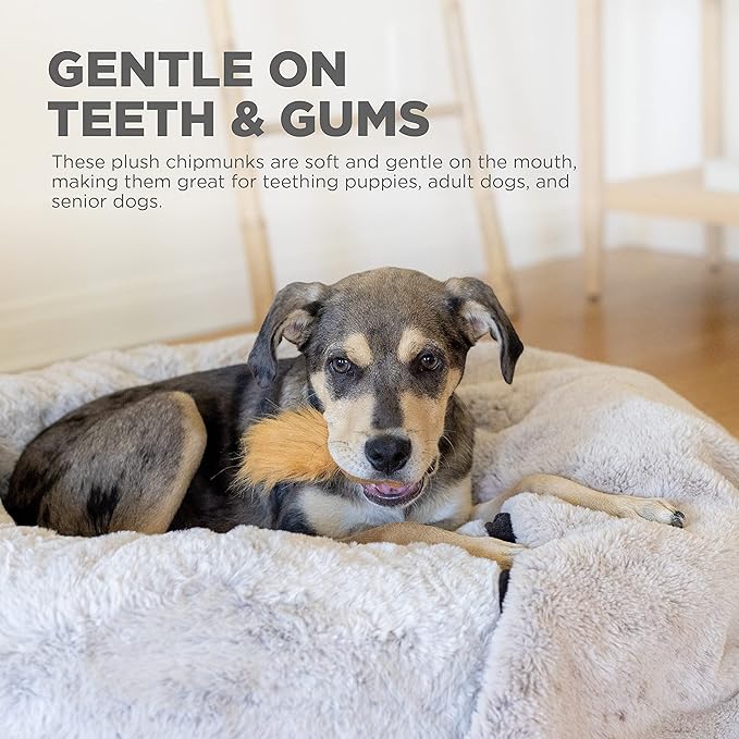• GENTLE ON TEETH & GUMS: These plush chipmunks are soft and gentle on the mouth, making them great for teething puppies, adult dogs, and senior dogs.