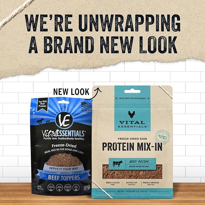 Vital Essentials Freeze Dried Raw Protein Mix-in Dog Food Topper, Beef Ground Topper for Dogs, 6 oz