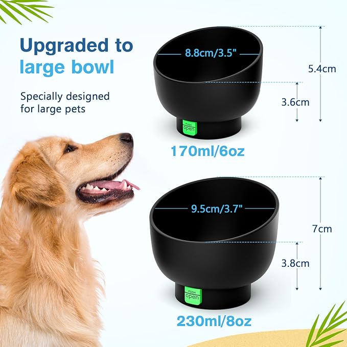 • 🐾【 UPGRADED SIMPLE OPERATION, NO LEAKAGE 】: With our 1-button open and lock feature and hands-free design, water flows out easily by simply pressing the bottle. The water-locking mechanism with 2 layers of silicone seal ensures it's completely leak-free, so you don't have to worry about drips.