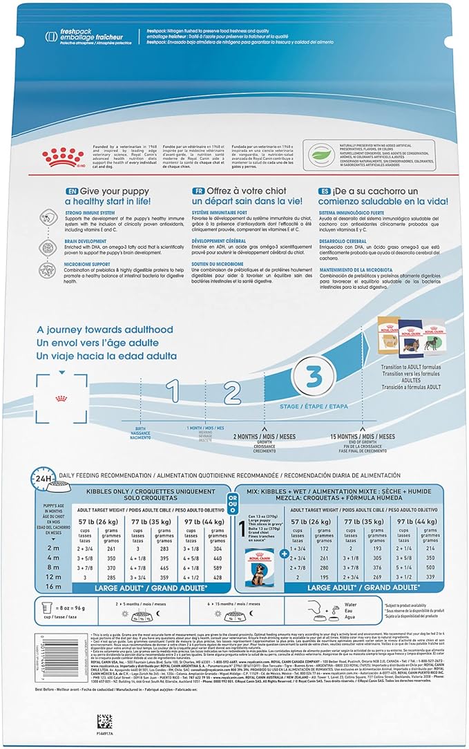 • FORMULATED FOR LARGE BREED PUPPIES: Royal Canin Large Puppy Dog Food is tailor-made for large breed puppies with an expected adult weight of 56-100 lb