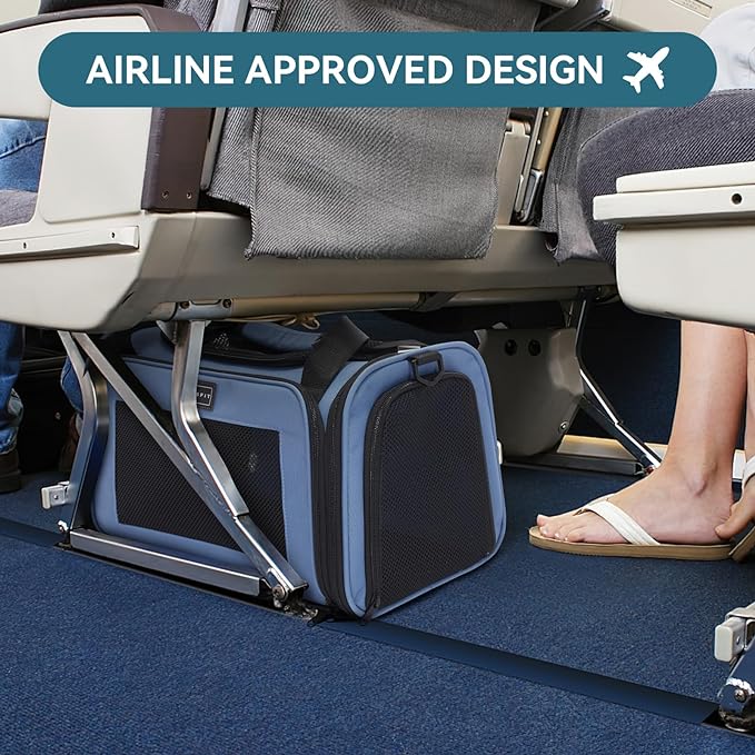 PETSFIT Pet Carrier, Dog Carrier Airline Approved, Collapsible Soft Sided TSA Approved Pet Carrier for Small and Medium Cats, Puppies Up to 12 Lbs, Cat Travel Carrier, Blue