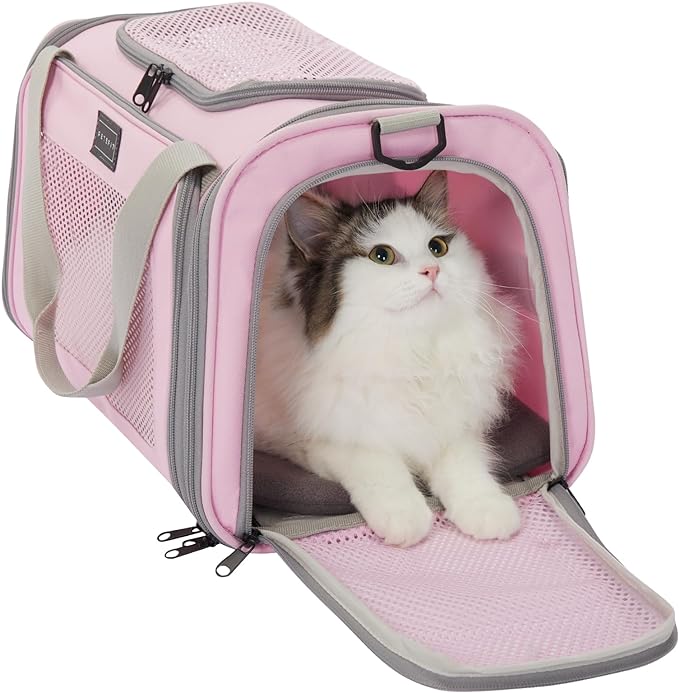 PETSFIT Cat Carrier, Pet Carrier Airline Approved, Cat Travel Carrier for Small and Medium Cats Under 12 Lbs, Soft Sided Kitten Carrier with Cozy Extendable Mat, Cat Carrier Bag, Pink