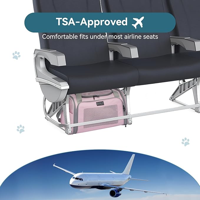 • [Pet Carrier Airline Approved] With an airline-approved design, Conforms to the under-seat dimensions of most airlines, you can take your pet to go to everywhere. The cat carrier bag comes with an extendable cozy fleece pet mat, which offers extra sleeping space for your traveling pet.
