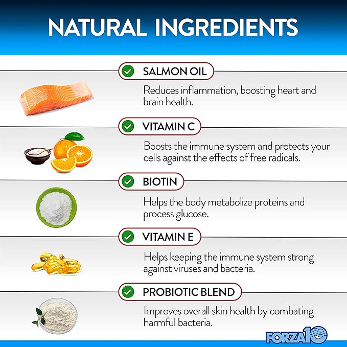 Forza10 Dog Skin and Coat Supplement with Omega 3 Fish Oil Dogs, Provides Dog Allergy Relief, Salmon Flavor Dog Vitamins & Supplements for Itchy Skin Relief, Dog Allergy Chews with Probiotics, 90 Ct.