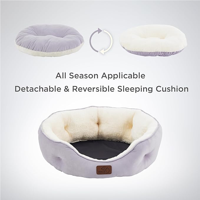 Bedsure Dog Beds for Small Dogs - Round Cat Beds for Indoor Cats, Washable Pet Bed for Puppy and Kitten with Slip-Resistant Bottom, 25 Inches, Misty Lilac