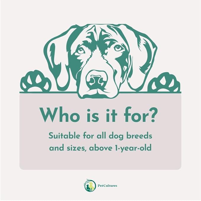• Premium Blend: PetCulture's pet probiotics for dogs digestive health combine 5 dog-specific strains of prebiotics, probiotics, and postbiotics. These canine probiotic supplements ensure maximum nutrient absorption with essential enzymes and vitamins.