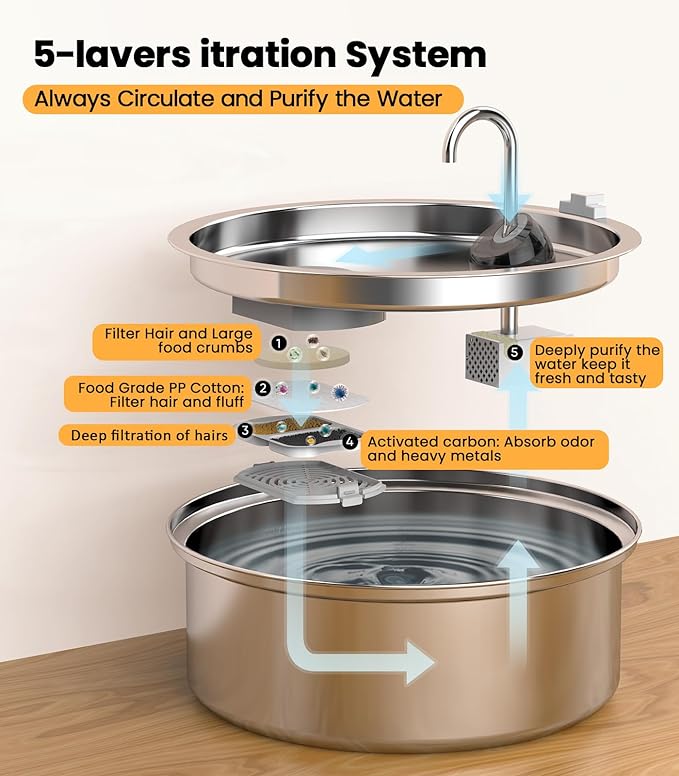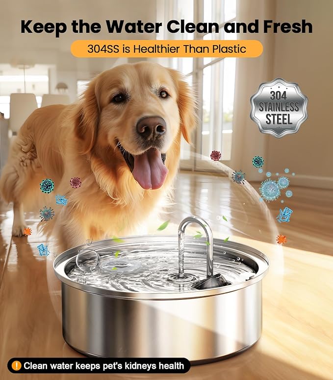 • 🐶👍【Easy to Use】SUS 304 stainless steel dog water bowl dispenser ensures easy cleaning – simply disassemble the top & base, reach every nook, Weekly soapy or warm water rinses are advised for optimal hygiene.