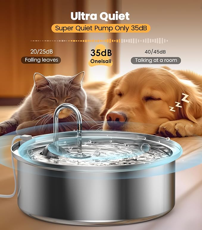 • 🐶👍【7L Large Capacity】The oneisall pet water dispenser boasts a 7L large capacity, silently auto-refilling water for pets of all sizes. Its slow, continuous flow extends refill times, ensuring ample fresh water for your cats and dogs daily, even when you're away or busy. Perfect for multi-pet households, it eliminates water source competition and water shortage concerns.